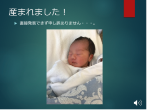 さすがに木曜出産・翌週月曜復帰は間に合わなかったため、音声吹き込み版を先生に送り、授業で再生していただいた。