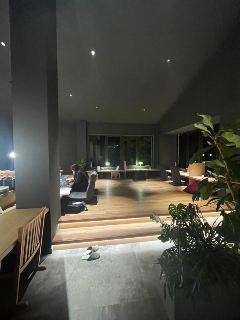 ↑端っこで丸まってるのが私。映えるのは空間のみである。